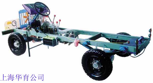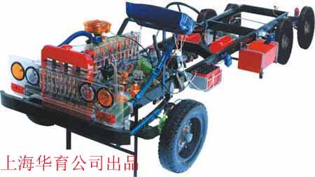 本品選用透明有機(jī)玻璃制作,內(nèi)中部件均以硬質(zhì)塑料料加工,用 螺絲固定在金屬高溫烘漆而成的車(chē)架上。各總成部分都以壓模成形加 工,代替過(guò)去膠粘合的方法,使產(chǎn)品在強(qiáng)度上有很大提高。發(fā)動(dòng)機(jī)總成用電機(jī)驅(qū)動(dòng),在油門(mén)處設(shè)有調(diào)速裝置,能演示發(fā)動(dòng)機(jī)轉(zhuǎn)速高低。離合器分離明顯,操縱靈活,離合器外殼整體壓模而成,變速箱和各檔齒輪用各種顏色表示,換檔靈活,手制動(dòng)美觀。后橋外形壓模而成,內(nèi)中主減速、差速轉(zhuǎn)動(dòng)自如,輪轂剎蹄壓模成型,剎蹄可調(diào)節(jié),前橋輪鼓可調(diào)整,轉(zhuǎn)向裝置以及電瓶、油箱、水箱,制動(dòng)管路分布清楚一目了然。電路采用對(duì)插件前后分布,燈架、風(fēng)窗、儀表板、后燈架用透明有機(jī)玻璃壓模成整體美觀逼真。