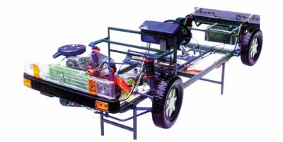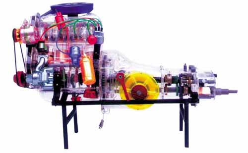 本品選用透明有機(jī)玻璃制作,內(nèi)中部件均以硬質(zhì)塑料料加工,用 螺絲固定在金屬高溫烘漆而成的車架上。各總成部分都以壓模成形加 工,代替過去膠粘合的方法,使產(chǎn)品在強(qiáng)度上有很大提高。發(fā)動(dòng)機(jī)總成用電機(jī)驅(qū)動(dòng),在油門處設(shè)有調(diào)速裝置,能演示發(fā)動(dòng)機(jī)轉(zhuǎn)速高低。離合器分離明顯,操縱靈活,離合器外殼整體壓模而成,變速箱和各檔齒輪用各種顏色表示,換檔靈活,手制動(dòng)美觀。后橋外形壓模而成,內(nèi)中主減速、差速轉(zhuǎn)動(dòng)自如,輪轂剎蹄壓模成型,剎蹄可調(diào)節(jié),前橋輪鼓可調(diào)整,轉(zhuǎn)向裝置以及電瓶、油箱、水箱,制動(dòng)管路分布清楚一目了然。電路采用對(duì)插件前后分布,燈架、風(fēng)窗、儀表板、后燈架用透明有機(jī)玻璃壓模成整體美觀逼真。