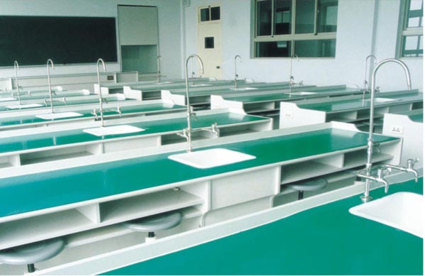 (2)材質(zhì):生物學(xué)生桌主體材料采用吸水性較小的密度板,臺面則采用耐酸堿性較好的美國著名品牌富美佳防火板,經(jīng)后成型機(jī)熱彎成型,其厚度為25mm。