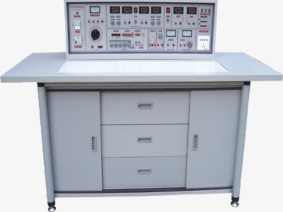 (一)實驗桌:學(xué)生實驗桌12張,一桌二座,實驗桌外形尺寸為160×70×80cm。桌子中央配置九孔電路插板,電路板注塑而成,表面布有九孔成一組相互聯(lián)通的插孔,元件盒在其上任意拼插成實驗電路。元件盒盒體透明直觀,內(nèi)裝電阻、電容、電感、二極管、三極管、場效應(yīng)管、可控硅等元件來完成原理實驗。內(nèi)裝元件一目了然,盒蓋印有不會褪色元件符號,線條清晰美觀。盒體與盒蓋采用較科學(xué)的壓卡式結(jié)構(gòu),維修、拆裝方便。實訓(xùn)項目由二十幾套特制實訓(xùn)電路板和相應(yīng)元器件來完成。每張操作桌配有一粒膠皮板,保護(hù)通用電路板和桌面(如需要在桌上放置電動機(jī)、焊接等) 桌子下部是元器件儲存柜,放置實驗元件、器 材、工具等。